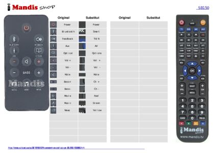 A continuació, us mostrarem la correspondència entre cada un dels botons del comandament original i el botó que realitza la mateixa funció en el comandament de substitució. En alguns casos, és possible que necessiti prémer la tecla SHIFT abans de prémer un altre botó per realitzar certes accions. Aquestes funcions addicionals sovint no s'utilitzen gaire i s'inclouen per facilitar la comprensió del comandament de substitució, o perquè el comandament original té més botons que el seu equivalent.