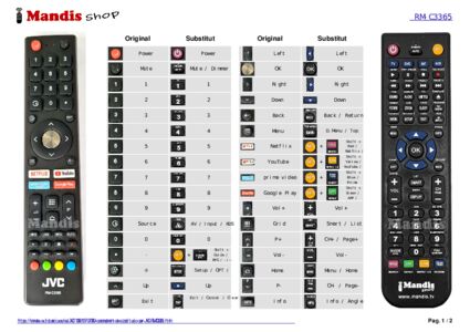 Aquest comandament a distància substitueix completament el teu RM-C3365 en totes les seves funcions. No és un comandament universal, sinó una còpia exacta del teu original.