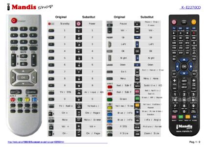 A continuació, us mostrarem la correspondència entre cada un dels botons del comandament original i el botó que realitza la mateixa funció en el comandament de substitució. En alguns casos, és possible que necessiti prémer la tecla SHIFT abans de prémer un altre botó per realitzar certes accions. Aquestes funcions addicionals sovint no s'utilitzen gaire i s'inclouen per facilitar la comprensió del comandament de substitució, o perquè el comandament original té més botons que el seu equivalent.