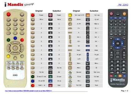 Aquest comandament a distància substitueix completament el teu MV-224G en totes les seves funcions. No és un comandament universal, sinó una còpia exacta del teu original.