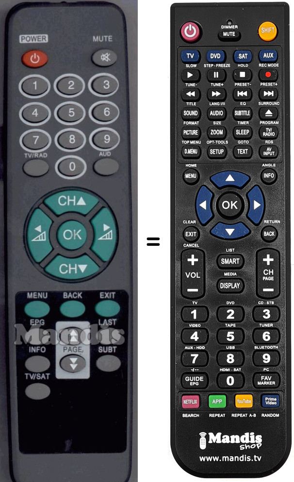 Comandament a distància que substitueix a l'original en totes les seves funcions. No es tracta d'un comandament universal sinó d'una còpia que substitueix l'original. Rebrà el comandament completament preparat per fer-lo funcionar només necessita posar-li les piles. No cal programar-lo. Té total garantia de que el comandament cumplirà amb les mateixes funcions de l'original.