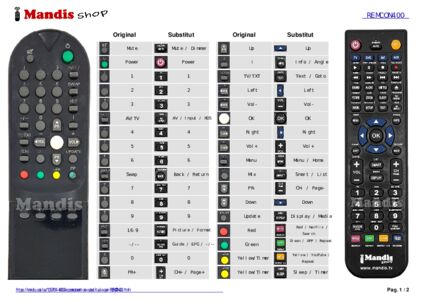 A continuació, us mostrarem la correspondència entre cada un dels botons del comandament original i el botó que realitza la mateixa funció en el comandament de substitució. En alguns casos, és possible que necessiti prémer la tecla SHIFT abans de prémer un altre botó per realitzar certes accions. Aquestes funcions addicionals sovint no s'utilitzen gaire i s'inclouen per facilitar la comprensió del comandament de substitució, o perquè el comandament original té més botons que el seu equivalent.