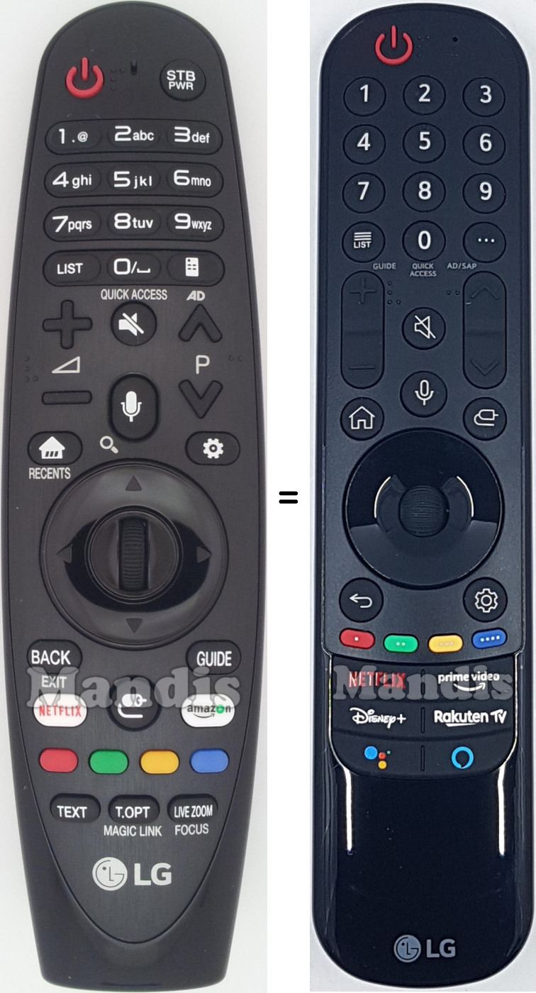 Comandaments equivalents que substitueixen en totes les seves funcions al comandament LG MR21GA (AKB76039701):