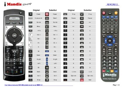 A continuació, us mostrarem la correspondència entre cada un dels botons del comandament original i el botó que realitza la mateixa funció en el comandament de substitució. En alguns casos, és possible que necessiti prémer la tecla SHIFT abans de prémer un altre botó per realitzar certes accions. Aquestes funcions addicionals sovint no s'utilitzen gaire i s'inclouen per facilitar la comprensió del comandament de substitució, o perquè el comandament original té més botons que el seu equivalent.