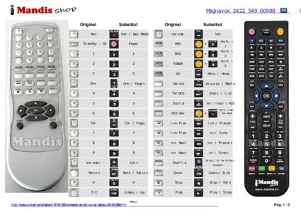 Inici > Marques > Comandaments a distància Magnavox > Comandament per Magnavox 2422 549 00988