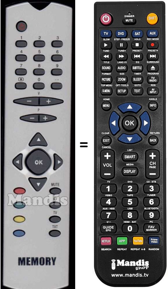 Comandament a distància que substitueix el comandament ATV 6121 en totes les seves funcions.