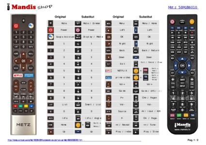 A continuació, us mostrarem la correspondència entre cada un dels botons del comandament original i el botó que realitza la mateixa funció en el comandament de substitució. En alguns casos, és possible que necessiti prémer la tecla SHIFT abans de prémer un altre botó per realitzar certes accions. Aquestes funcions addicionals sovint no s'utilitzen gaire i s'inclouen per facilitar la comprensió del comandament de substitució, o perquè el comandament original té més botons que el seu equivalent.
