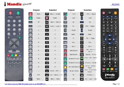 Aquest comandament a distància substitueix completament el teu RC 2040 (20068713) en totes les seves funcions. No és un comandament universal, sinó una còpia exacta del teu original.