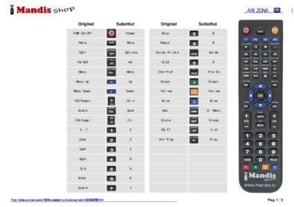 S'inclou un document amb la correspondència dels botons del nou comandament a distància per facilitar el seu ús.