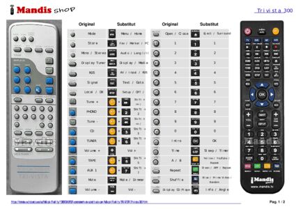 Aquest comandament a distància substitueix completament el teu TRI-VISTA (Trivista 300) en totes les seves funcions. No és un comandament universal, sinó una còpia exacta del teu original.