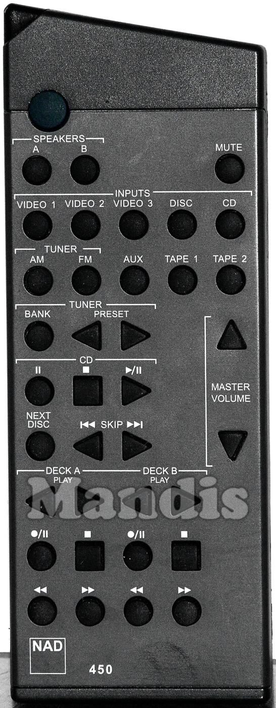 Comandament a distància original 450 de la marca NAD. Es tracta d'un model original de comandament a distància.