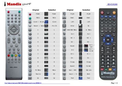 A continuació, us mostrarem la correspondència entre cada un dels botons del comandament original i el botó que realitza la mateixa funció en el comandament de substitució. En alguns casos, és possible que necessiti prémer la tecla SHIFT abans de prémer un altre botó per realitzar certes accions. Aquestes funcions addicionals sovint no s'utilitzen gaire i s'inclouen per facilitar la comprensió del comandament de substitució, o perquè el comandament original té més botons que el seu equivalent.