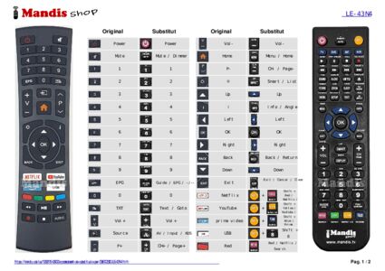 Aquest comandament a distància substitueix completament el teu DVB-T2S2C (LE-43N4) en totes les seves funcions. No és un comandament universal, sinó una còpia exacta del teu original.