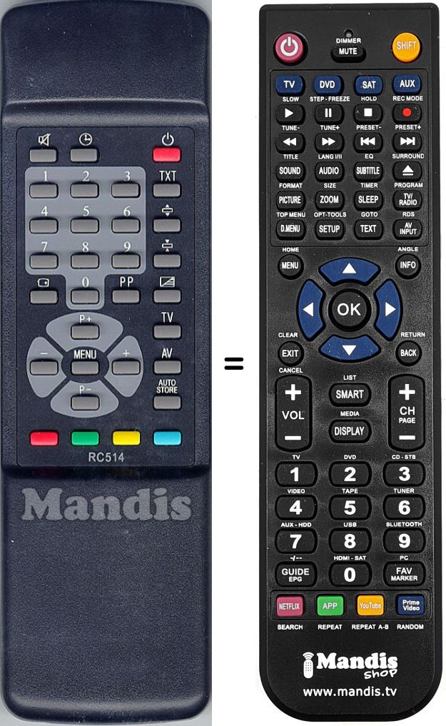 Comandament a distància que substitueix a l'original en totes les seves funcions.