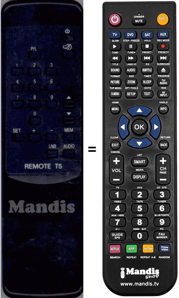 Comandament a distància que substitueix a l'original en totes les seves funcions.