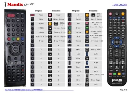 A continuació, us mostrarem la correspondència entre cada un dels botons del comandament original i el botó que realitza la mateixa funció en el comandament de substitució. En alguns casos, és possible que necessiti prémer la tecla SHIFT abans de prémer un altre botó per realitzar certes accions. Aquestes funcions addicionals sovint no s'utilitzen gaire i s'inclouen per facilitar la comprensió del comandament de substitució, o perquè el comandament original té més botons que el seu equivalent.