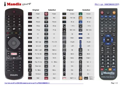A continuació, us mostrarem la correspondència entre cada un dels botons del comandament original i el botó que realitza la mateixa funció en el comandament de substitució. En alguns casos, és possible que necessiti prémer la tecla SHIFT abans de prémer un altre botó per realitzar certes accions. Aquestes funcions addicionals sovint no s'utilitzen gaire i s'inclouen per facilitar la comprensió del comandament de substitució, o perquè el comandament original té més botons que el seu equivalent.