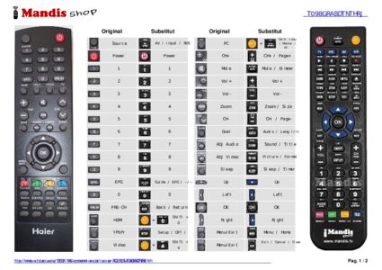 S'inclou un document amb la correspondència dels botons del nou comandament a distància per facilitar el seu ús.