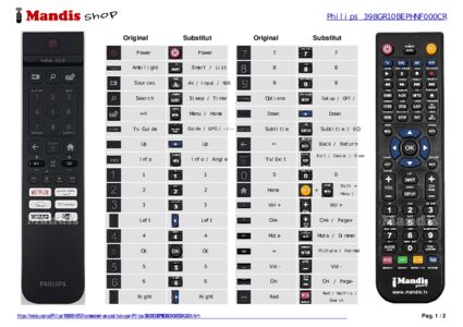 A continuació, us mostrarem la correspondència entre cada un dels botons del comandament original i el botó que realitza la mateixa funció en el comandament de substitució. En alguns casos, és possible que necessiti prémer la tecla SHIFT abans de prémer un altre botó per realitzar certes accions. Aquestes funcions addicionals sovint no s'utilitzen gaire i s'inclouen per facilitar la comprensió del comandament de substitució, o perquè el comandament original té més botons que el seu equivalent.