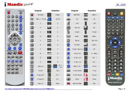 Aquest comandament a distància substitueix completament el teu RC 2530 (30044500) en totes les seves funcions. No és un comandament universal, sinó una còpia exacta del teu original.