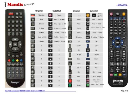 A continuació, us mostrarem la correspondència entre cada un dels botons del comandament original i el botó que realitza la mateixa funció en el comandament de substitució. En alguns casos, és possible que necessiti prémer la tecla SHIFT abans de prémer un altre botó per realitzar certes accions. Aquestes funcions addicionals sovint no s'utilitzen gaire i s'inclouen per facilitar la comprensió del comandament de substitució, o perquè el comandament original té més botons que el seu equivalent.
