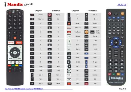 Aquest comandament a distància substitueix completament el teu RC4318 (30100823) en totes les seves funcions. No és un comandament universal, sinó una còpia exacta del teu original.