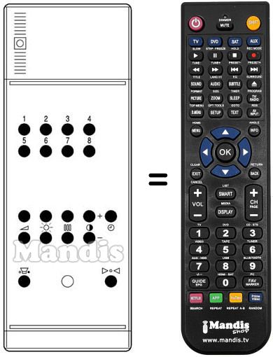 Comandament a distància que substitueix a l'original en totes les seves funcions. No es tracta d'un comandament universal sinó d'una còpia que substitueix l'original. Rebrà el comandament completament preparat per fer-lo funcionar només necessita posar-li les piles. No cal programar-lo. Té total garantia de que el comandament cumplirà amb les mateixes funcions de l'original.