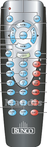 Comandament a distància original CX-70DHD que serveix per televisors de la marca RUNCO. Es tracta d'un model original de comandament a distància.