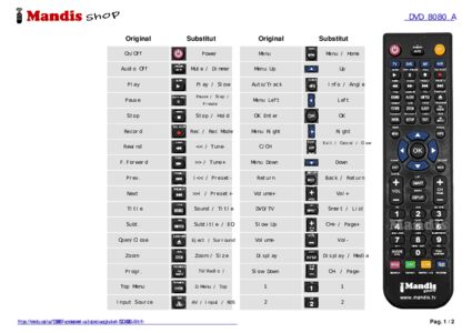 A continuació, us mostrarem la correspondència entre cada un dels botons del comandament original i el botó que realitza la mateixa funció en el comandament de substitució. En alguns casos, és possible que necessiti prémer la tecla SHIFT abans de prémer un altre botó per realitzar certes accions. Aquestes funcions addicionals sovint no s'utilitzen gaire i s'inclouen per facilitar la comprensió del comandament de substitució, o perquè el comandament original té més botons que el seu equivalent.
