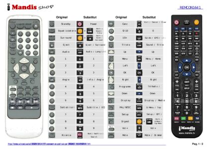 A continuació, us mostrarem la correspondència entre cada un dels botons del comandament original i el botó que realitza la mateixa funció en el comandament de substitució. En alguns casos, és possible que necessiti prémer la tecla SHIFT abans de prémer un altre botó per realitzar certes accions. Aquestes funcions addicionals sovint no s'utilitzen gaire i s'inclouen per facilitar la comprensió del comandament de substitució, o perquè el comandament original té més botons que el seu equivalent.