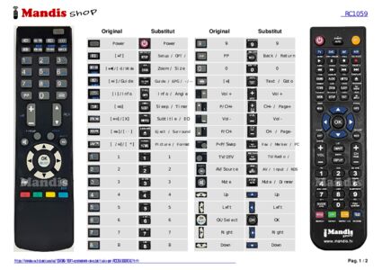 Aquest comandament a distància substitueix completament el teu RC1059 (30067042) en totes les seves funcions. No és un comandament universal, sinó una còpia exacta del teu original.