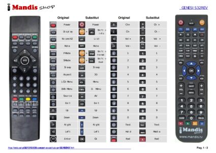 A continuació, us mostrarem la correspondència entre cada un dels botons del comandament original i el botó que realitza la mateixa funció en el comandament de substitució. En alguns casos, és possible que necessiti prémer la tecla SHIFT abans de prémer un altre botó per realitzar certes accions. Aquestes funcions addicionals sovint no s'utilitzen gaire i s'inclouen per facilitar la comprensió del comandament de substitució, o perquè el comandament original té més botons que el seu equivalent.