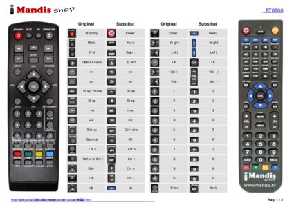 A continuació, us mostrarem la correspondència entre cada un dels botons del comandament original i el botó que realitza la mateixa funció en el comandament de substitució. En alguns casos, és possible que necessiti prémer la tecla SHIFT abans de prémer un altre botó per realitzar certes accions. Aquestes funcions addicionals sovint no s'utilitzen gaire i s'inclouen per facilitar la comprensió del comandament de substitució, o perquè el comandament original té més botons que el seu equivalent.