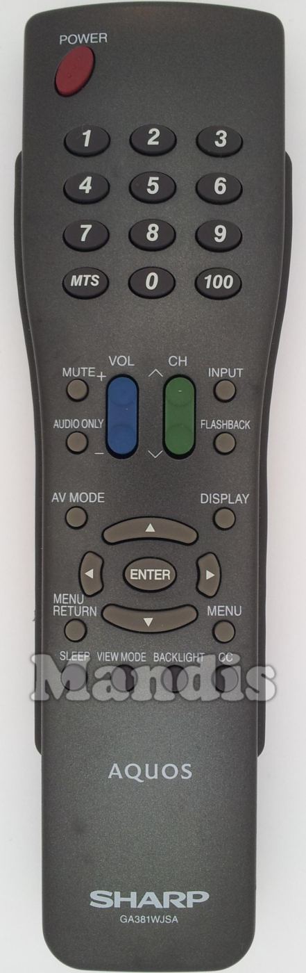 Comandament a distància recanvi GA381WJSA que serveix per televisors de la marca Sharp.
