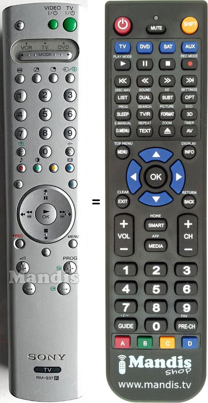 Aquest comandament a distància substitueix la majoria de les funcions del teu RM-937. No és un comandament universal, sinó una còpia amb la majoria de les tecles i funcions del teu original.