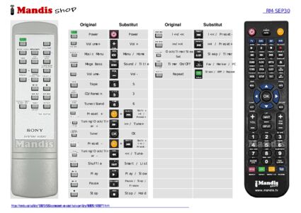 Aquest comandament a distància substitueix completament el teu RMSEP30 (147682711) en totes les seves funcions. No és un comandament universal, sinó una còpia exacta del teu original.