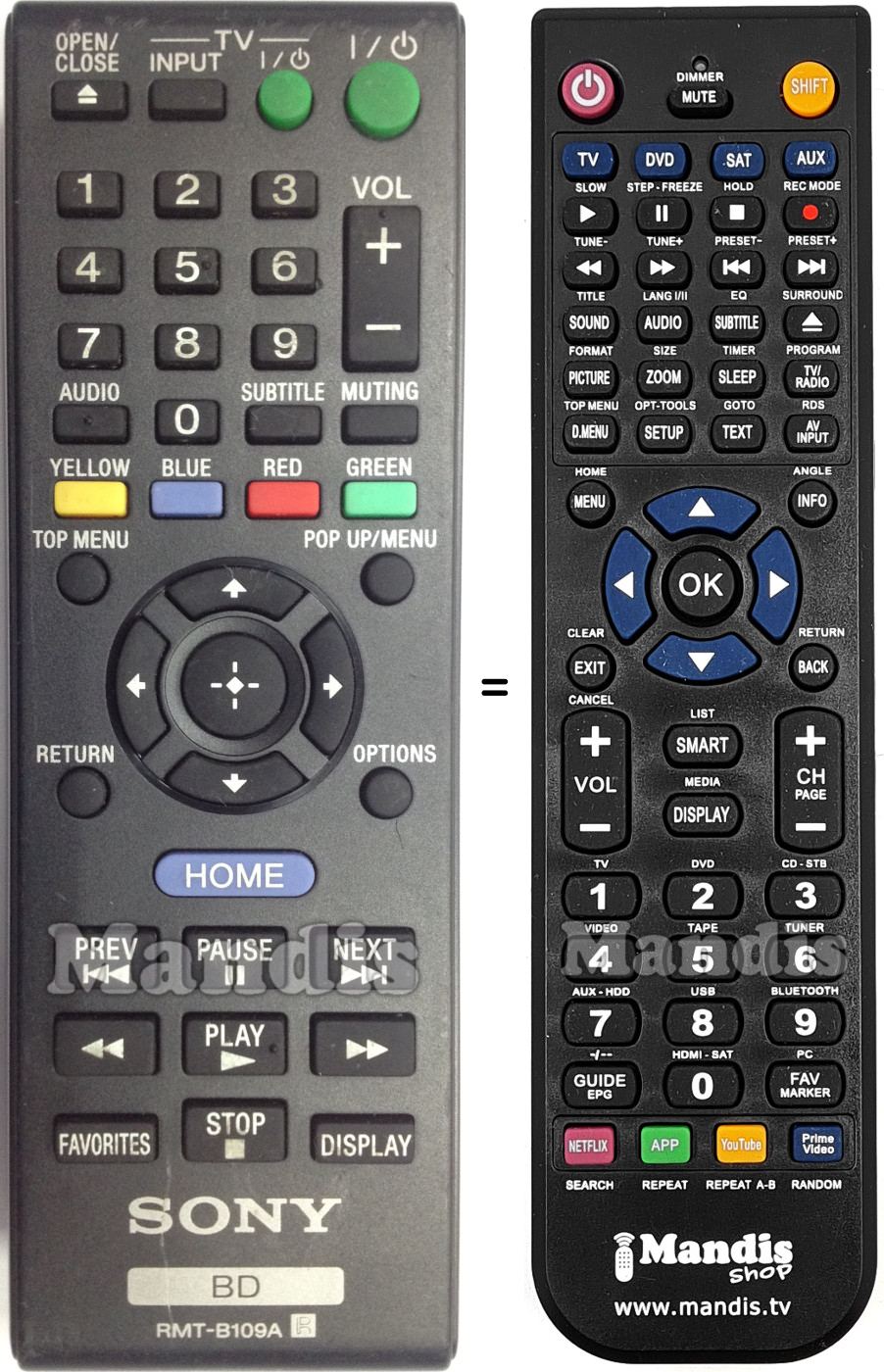 Aquest comandament a distància substitueix completament el teu RMT-B109A (148939911) en totes les seves funcions. No és un comandament universal, sinó una còpia exacta del teu original.