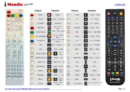 A continuació, us mostrarem la correspondència entre cada un dels botons del comandament original i el botó que realitza la mateixa funció en el comandament de substitució. En alguns casos, és possible que necessiti prémer la tecla SHIFT abans de prémer un altre botó per realitzar certes accions. Aquestes funcions addicionals sovint no s'utilitzen gaire i s'inclouen per facilitar la comprensió del comandament de substitució, o perquè el comandament original té més botons que el seu equivalent.
