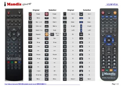 A continuació, us mostrarem la correspondència entre cada un dels botons del comandament original i el botó que realitza la mateixa funció en el comandament de substitució. En alguns casos, és possible que necessiti prémer la tecla SHIFT abans de prémer un altre botó per realitzar certes accions. Aquestes funcions addicionals sovint no s'utilitzen gaire i s'inclouen per facilitar la comprensió del comandament de substitució, o perquè el comandament original té més botons que el seu equivalent.