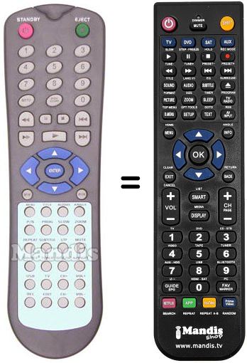 Comandament a distància que substitueix a l'original en totes les seves funcions. No es tracta d'un comandament universal sinó d'una còpia que substitueix l'original. Rebrà el comandament completament preparat per fer-lo funcionar només necessita posar-li les piles. No cal programar-lo. Té total garantia de que el comandament cumplirà amb les mateixes funcions de l'original.