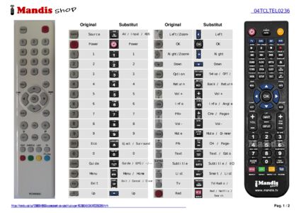 A continuació, us mostrarem la correspondència entre cada un dels botons del comandament original i el botó que realitza la mateixa funció en el comandament de substitució. En alguns casos, és possible que necessiti prémer la tecla SHIFT abans de prémer un altre botó per realitzar certes accions. Aquestes funcions addicionals sovint no s'utilitzen gaire i s'inclouen per facilitar la comprensió del comandament de substitució, o perquè el comandament original té més botons que el seu equivalent.