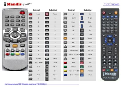 A continuació, us mostrarem la correspondència entre cada un dels botons del comandament original i el botó que realitza la mateixa funció en el comandament de substitució. En alguns casos, és possible que necessiti prémer la tecla SHIFT abans de prémer un altre botó per realitzar certes accions. Aquestes funcions addicionals sovint no s'utilitzen gaire i s'inclouen per facilitar la comprensió del comandament de substitució, o perquè el comandament original té més botons que el seu equivalent.