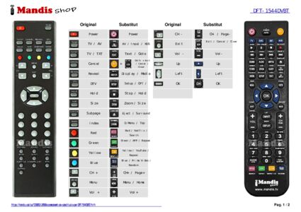 Aquest comandament a distància substitueix completament el teu DFT-1544DVBT en totes les seves funcions. No és un comandament universal, sinó una còpia exacta del teu original.