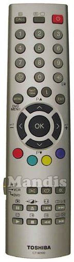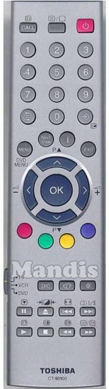 Comandament a distància original CT-90100 que serveix per televisors de la marca Toshiba. Es tracta d'un model original de comandament a distància.