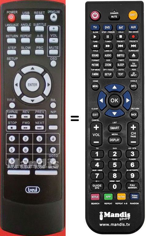 Comandament a distància que substitueix el comandament DXV3530USB en totes les seves funcions.
