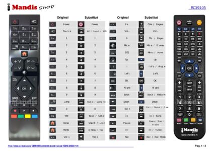 Aquest comandament a distància substitueix completament el teu RC39105 (30101638) en totes les seves funcions. No és un comandament universal, sinó una còpia exacta del teu original.