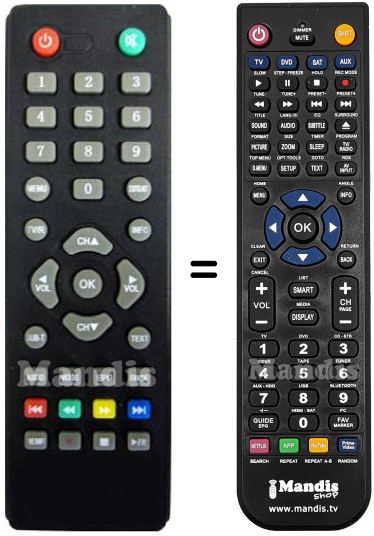 Below, we will show you the correspondence between each button on the original remote control and the button that performs the same function on the replacement remote control. In some cases, you may need to press the SHIFT key before pressing another button to perform certain actions. These additional functions are often not widely used and are included to facilitate understanding of the replacement remote control, or because the original remote control has more buttons than its equivalent.