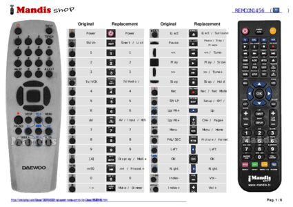 Below, we will show you the correspondence between each button on the original remote control and the button that performs the same function on the replacement remote control. In some cases, you may need to press the SHIFT key before pressing another button to perform certain actions. These additional functions are often not widely used and are included to facilitate understanding of the replacement remote control, or because the original remote control has more buttons than its equivalent.