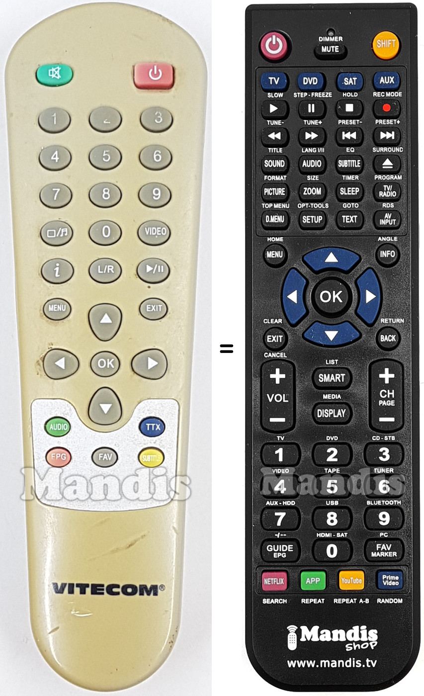 Below, we will show you the correspondence between each button on the original remote control and the button that performs the same function on the replacement remote control. In some cases, you may need to press the SHIFT key before pressing another button to perform certain actions. These additional functions are often not widely used and are included to facilitate understanding of the replacement remote control, or because the original remote control has more buttons than its equivalent.