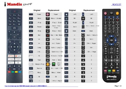Below, we will show you the correspondence between each button on the original remote control and the button that performs the same function on the replacement remote control. In some cases, you may need to press the SHIFT key before pressing another button to perform certain actions. These additional functions are often not widely used and are included to facilitate understanding of the replacement remote control, or because the original remote control has more buttons than its equivalent.